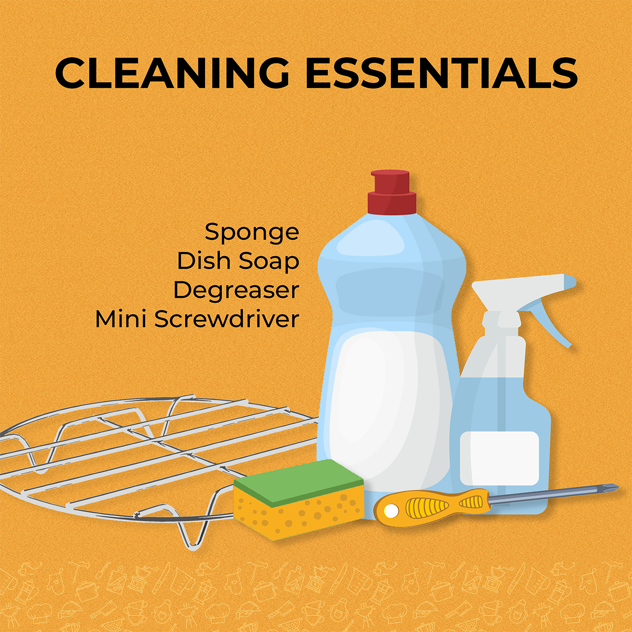 First things first, daily rinsing could lead for the screws to loosen up. Make sure you have a mini screwdriver handy. After that, prepare the following cleaning essentials: sponge, dish soap, and degreaser. If you’re asking, yes, you don’t really need a lot when cleaning your air fryer.