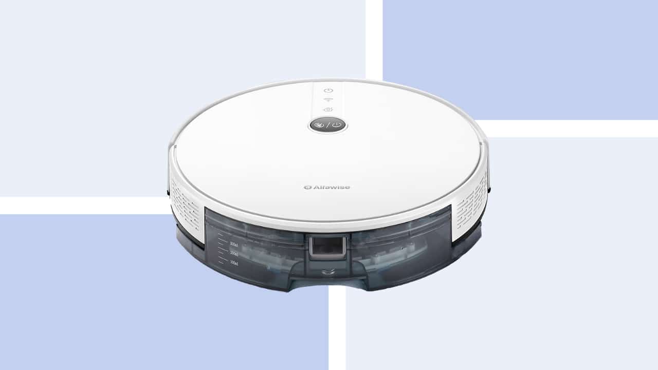 The Alfawise V8S Pro sweeps and mops — it goes over your floors but you have to take the time to set it up. Lucky for you it has voice-controlled functions, an Epson gyroscope to map rooms, 1800Pa of suction, and is quiet at 65dB.