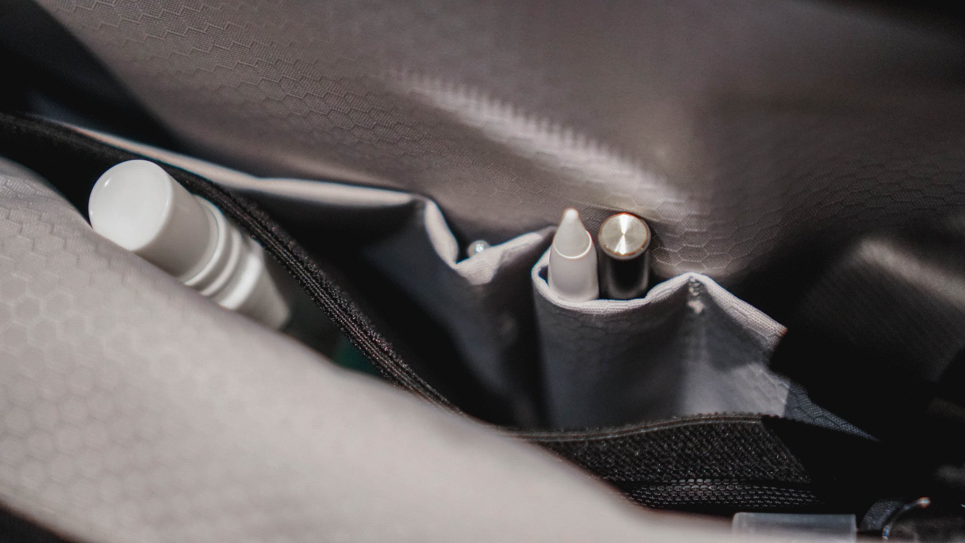 Moving on to the front pocket, there’s a mesh area where I put the grooming kit. Gotta try to stay looking fly, after all.