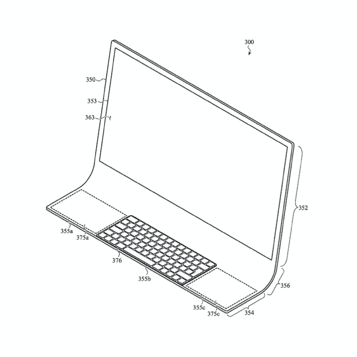 Opening the document will surprise you with a series of patent figures. It is said that they will use a curved sheet of glass instead of the usual aluminum closure. The figure below shows how you can place a Magic Keyboard on top of the glass. It will then have a dedicated place for the trackpad beside it.