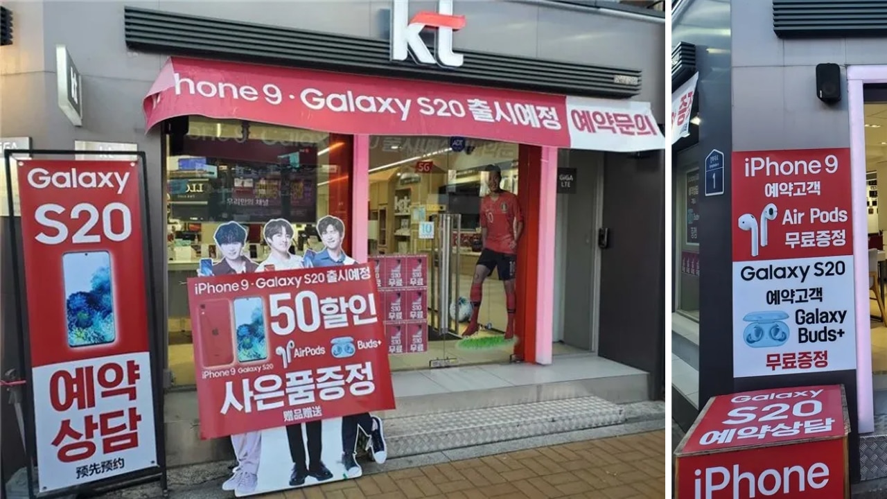 However, both brands have suddenly appeared in South Korea. A Korean Telecom store has displayed pre-order posters for the iPhone 9 and the Galaxy S20. Further, the iPhone 9 and the Galaxy S20 will come with free AirPods and the rumored Galaxy Buds+, respectively.