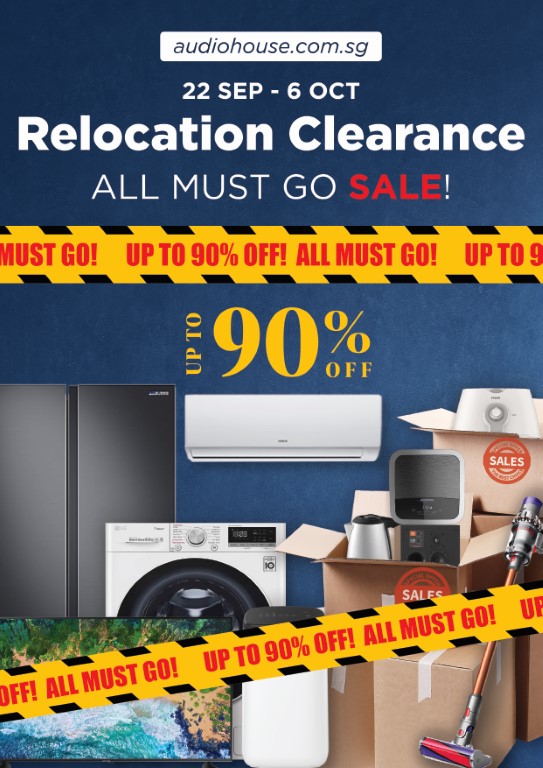 After 30 years of presence in Singapore, Audio House is finally relocating to a brand new showroom. As such, every appliance on its current store must go. Up to 37,000 appliances are up for grabs, from smart TVs, refrigerators, washers, sound systems, aircon, robotic vacuum, air purifiers, and more.