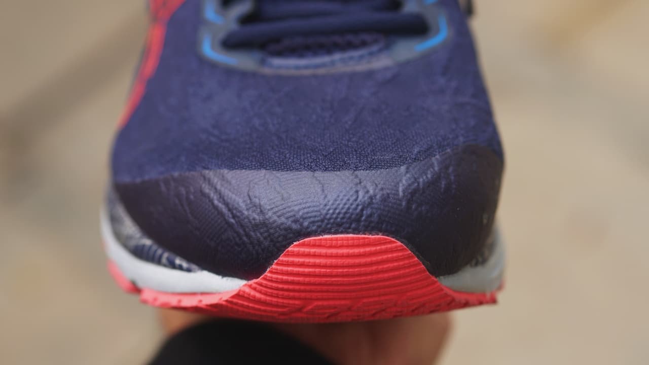 There’s also a stronger overlay over the mesh in the parts of the upper where you need stronger materials. Places like the front of the shoes, toe caps, and the eyelets for the laces. This is all so that the mesh does not tear because of your toenails.