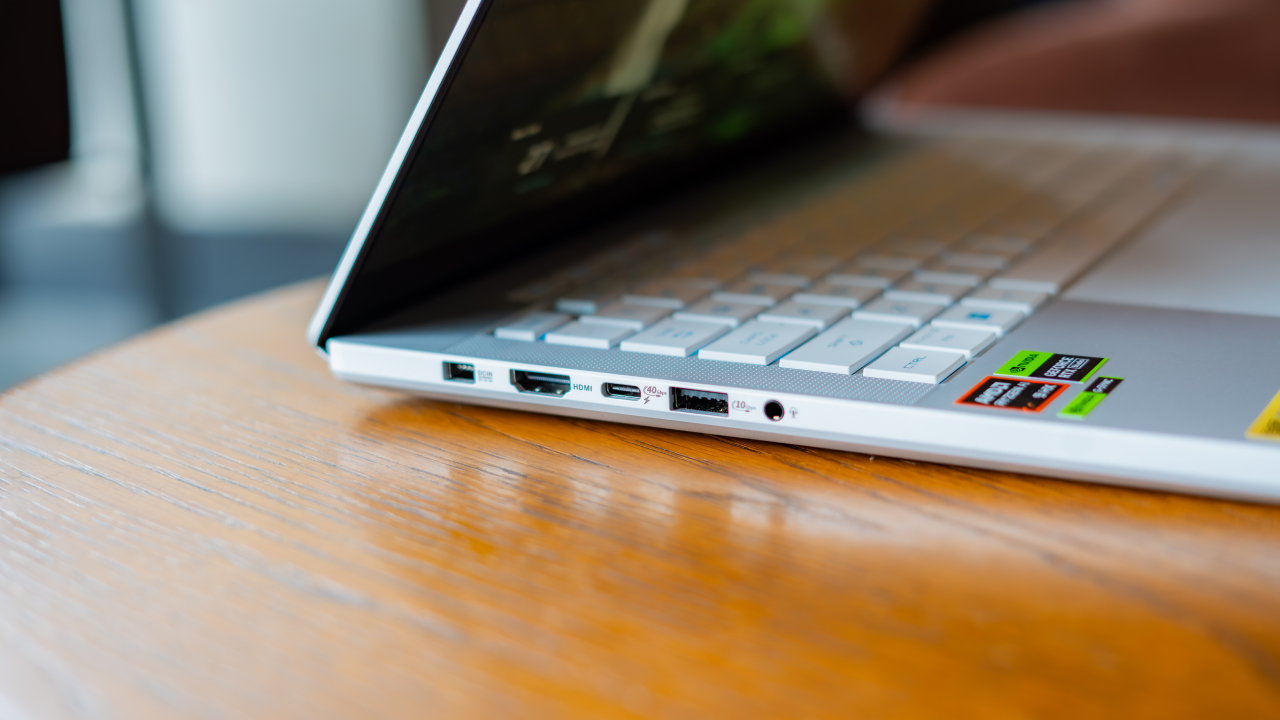 On the sides, the Zephyrus G14 has a power delivery port, an HDMI port, two USB-A slots, two USB-C slots, a headphone jack, and a microSD reader. It’s a standard set of side-mounted ports, but they do get the job done.