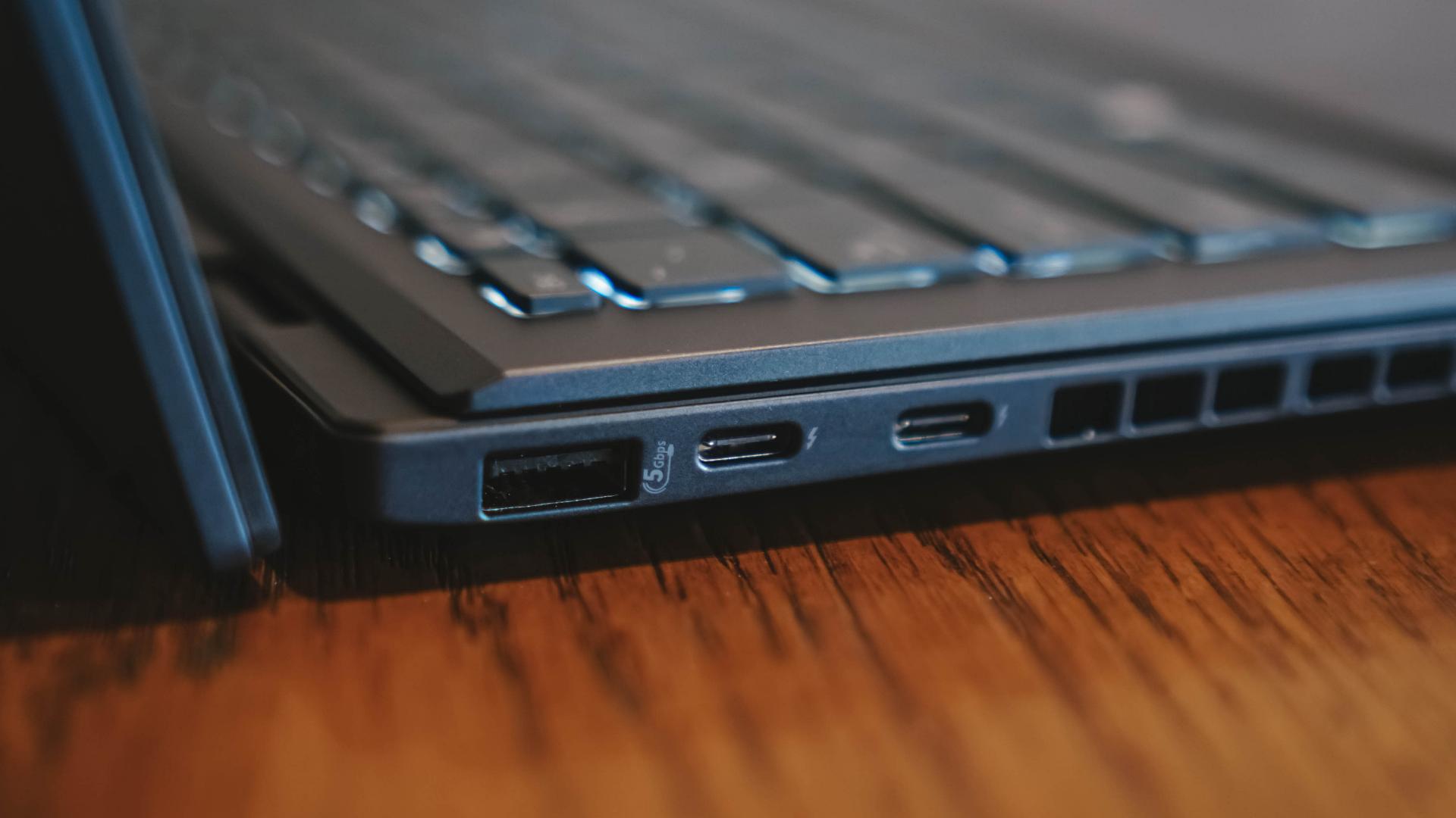 It comes with an assortment of ports: two full-function USB 3.2 Gen 2 Type Cs, two USB 3.2 Gen 1 Type As, HDMI 2.1, TDMS, audio combo jack, RJ45 LAN, and Kensington Nano Security Slot.