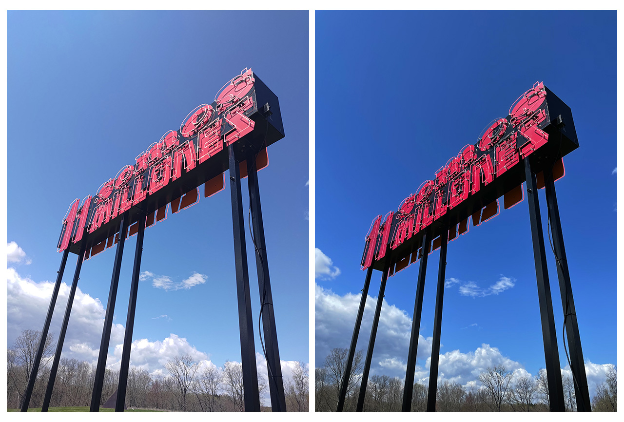 Here’s another ultra-wide angle sample. Olaf Breuning’s Clouds. The iPhone 12 Pro not only has the widest field of view but also produced a more vibrant blue sky.