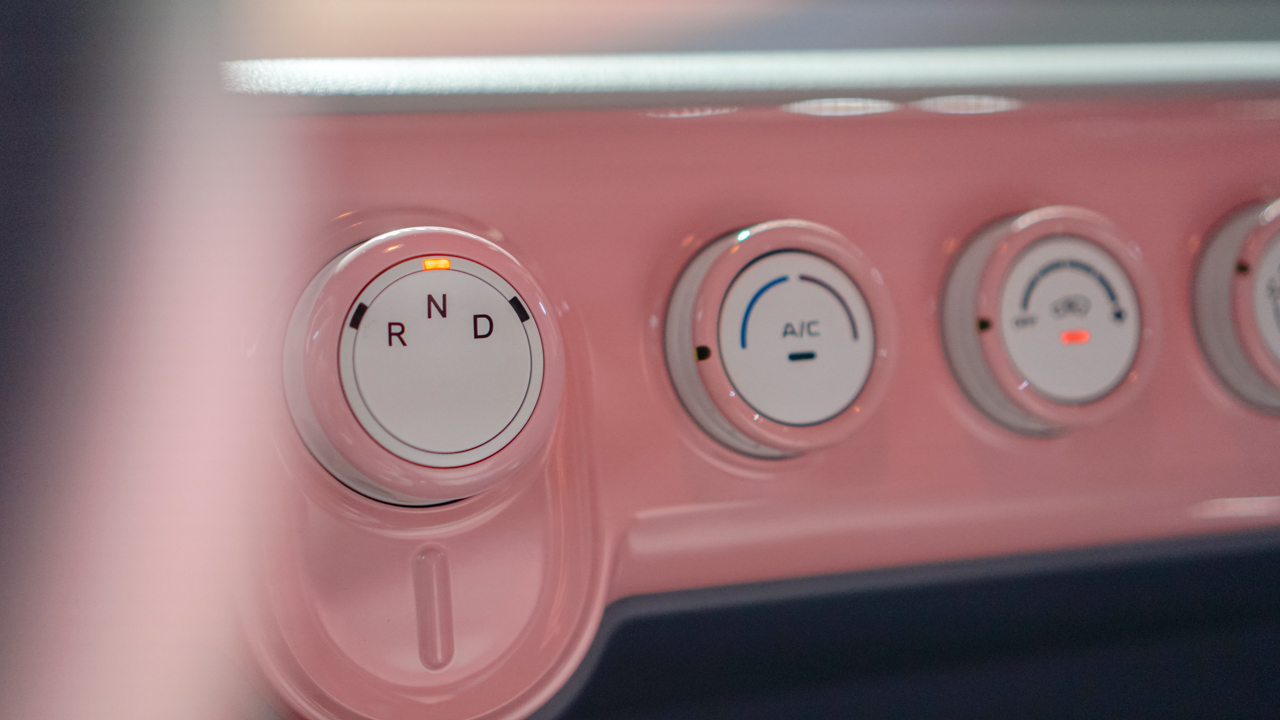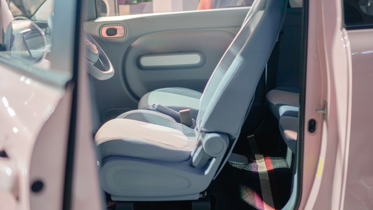 Inside, the Pony Mini EV doesn’t disappoint. The two-tone interior and minimalist controls begs to be touched and tinkered, just to play “Femininomenon.”