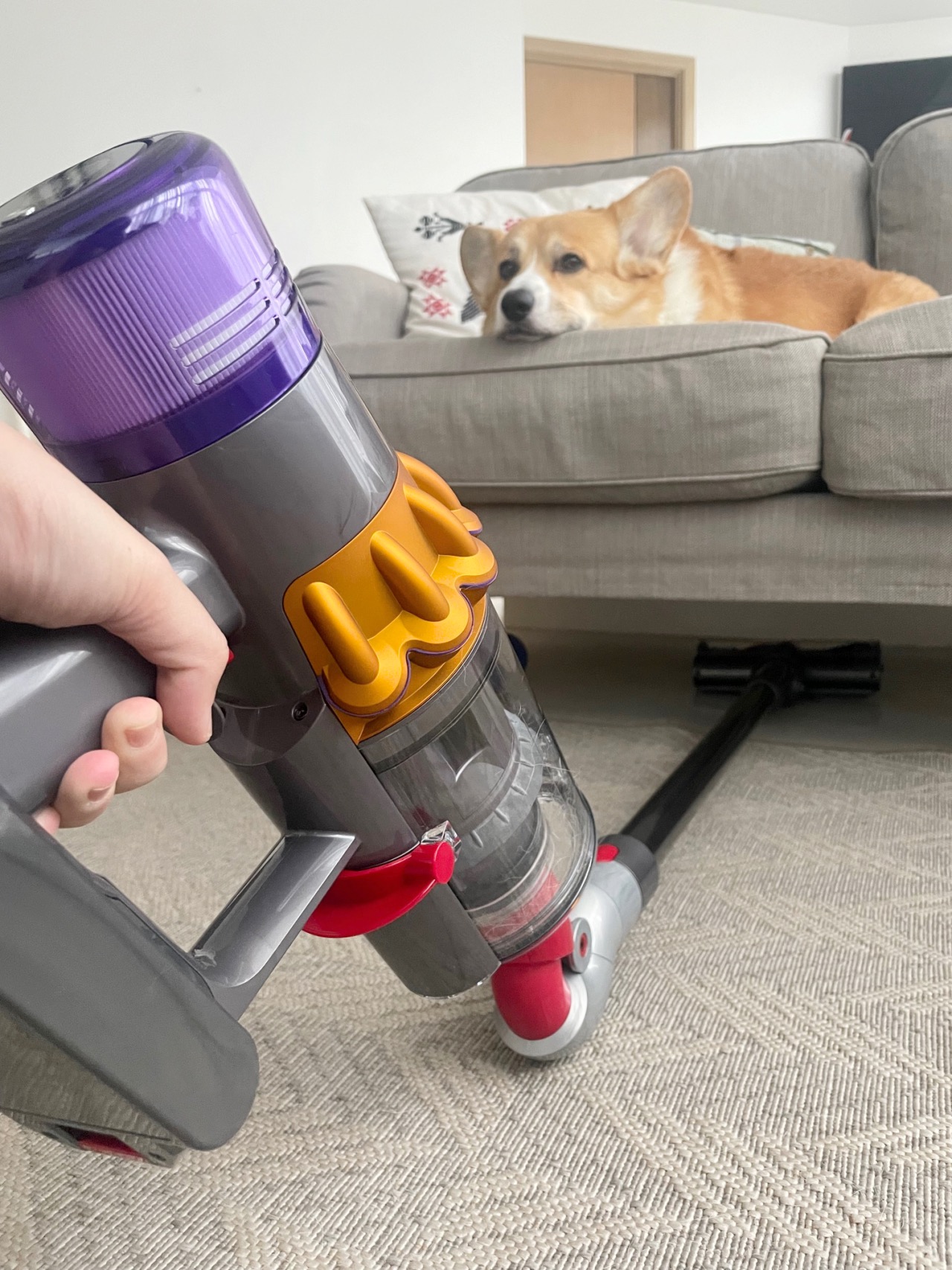 The Digital Motorbar or the V15’s main cleaning head now comes with an anti-tangle comb that clears hair from the brush bar. This is something I longed for vacuums to have as detangling hair from brushes and rollers isn’t something to look forward to. It’s no gimmick either. My hair’s been getting longer and I shed almost as much as our corgi. We tested it here at home and it actually works.