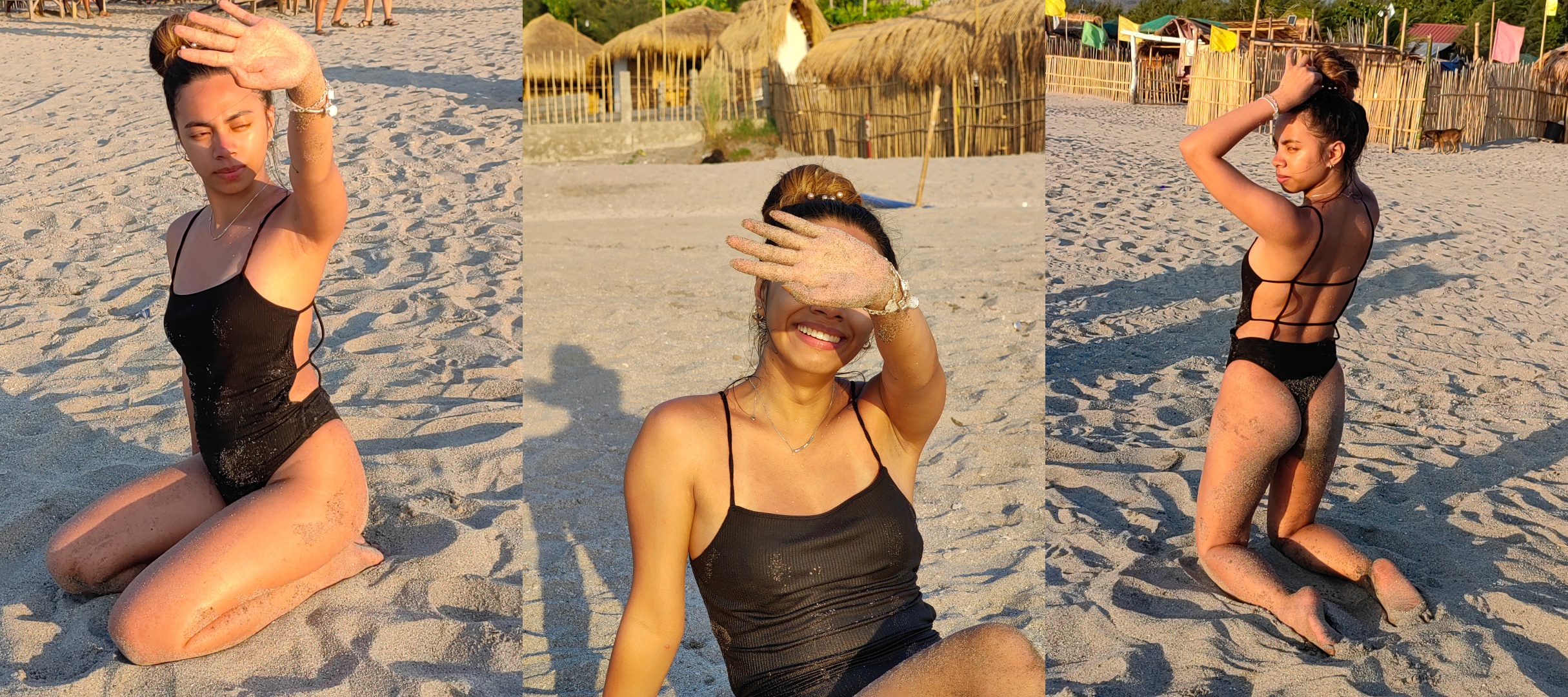 After eating my breakfast, I immediately went out from our cottage to the beachside. My friend asked me to take her new beach photos in her third opposing bikini pair.