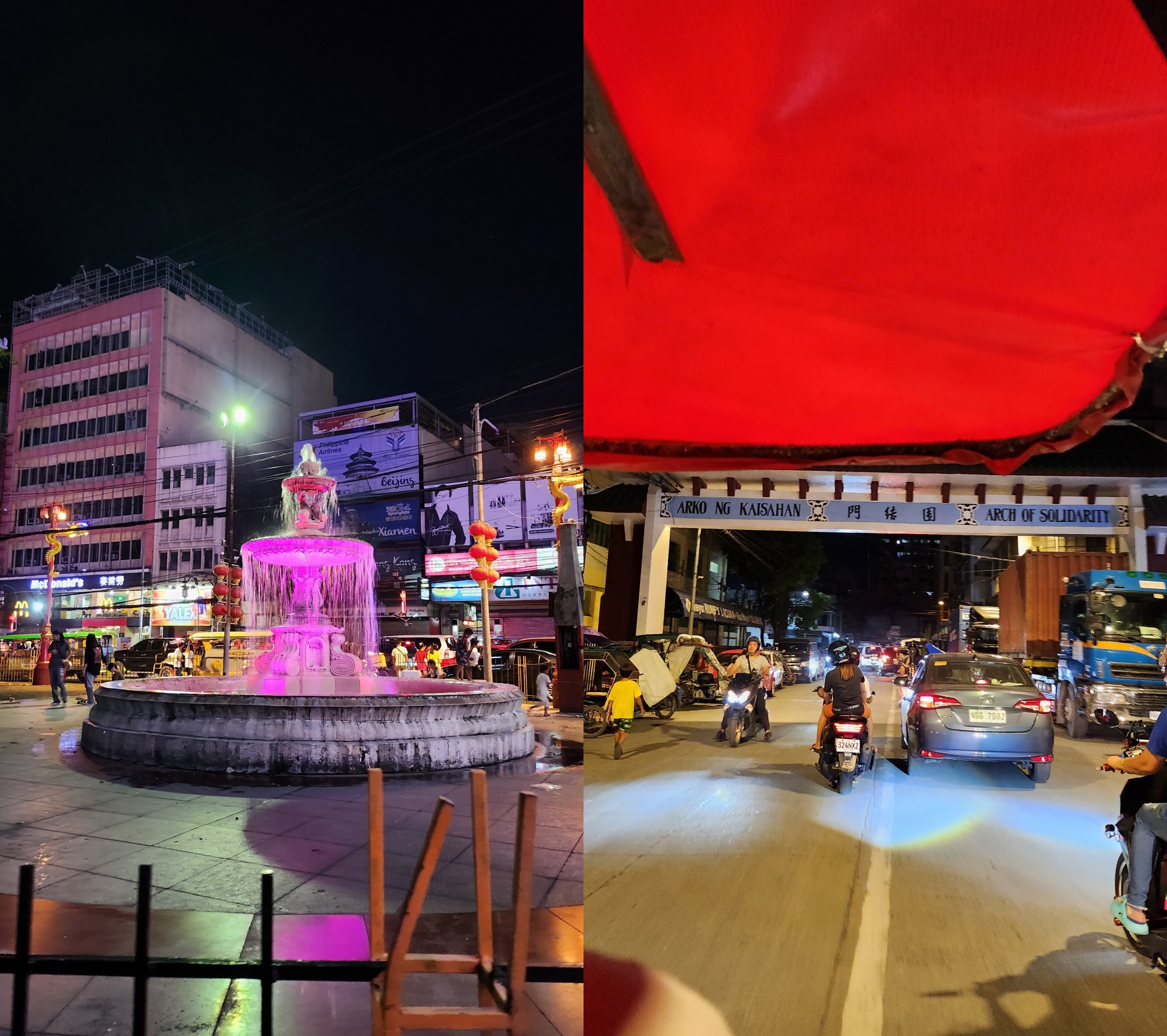 Just to emphasize how massive the structure is, I then used the ultra-wide lens of the Galaxy Z Flip4. Even if the wider lens isn’t as bright as how the regular 1x lens captures night shots (I mean f/2.2 aperture really isn’t sufficient), the abundant presence of lights in the bridge helped display the vital information behind the bridge’s development: the Binondo-Intramuros Bridge is a project aided by China.