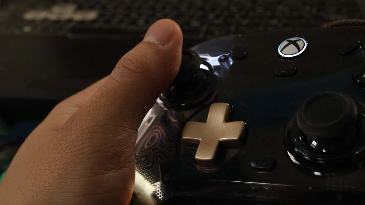 Despite offering a less ostentatious color profile, the controller still knows its market well. Most of the controller’s front is encased in transparent plastic. Underneath, you’ll find a swirly, Damascus-like pattern. The effect adds style to the usual sleekness of being able to see inside a device’s inner workings.