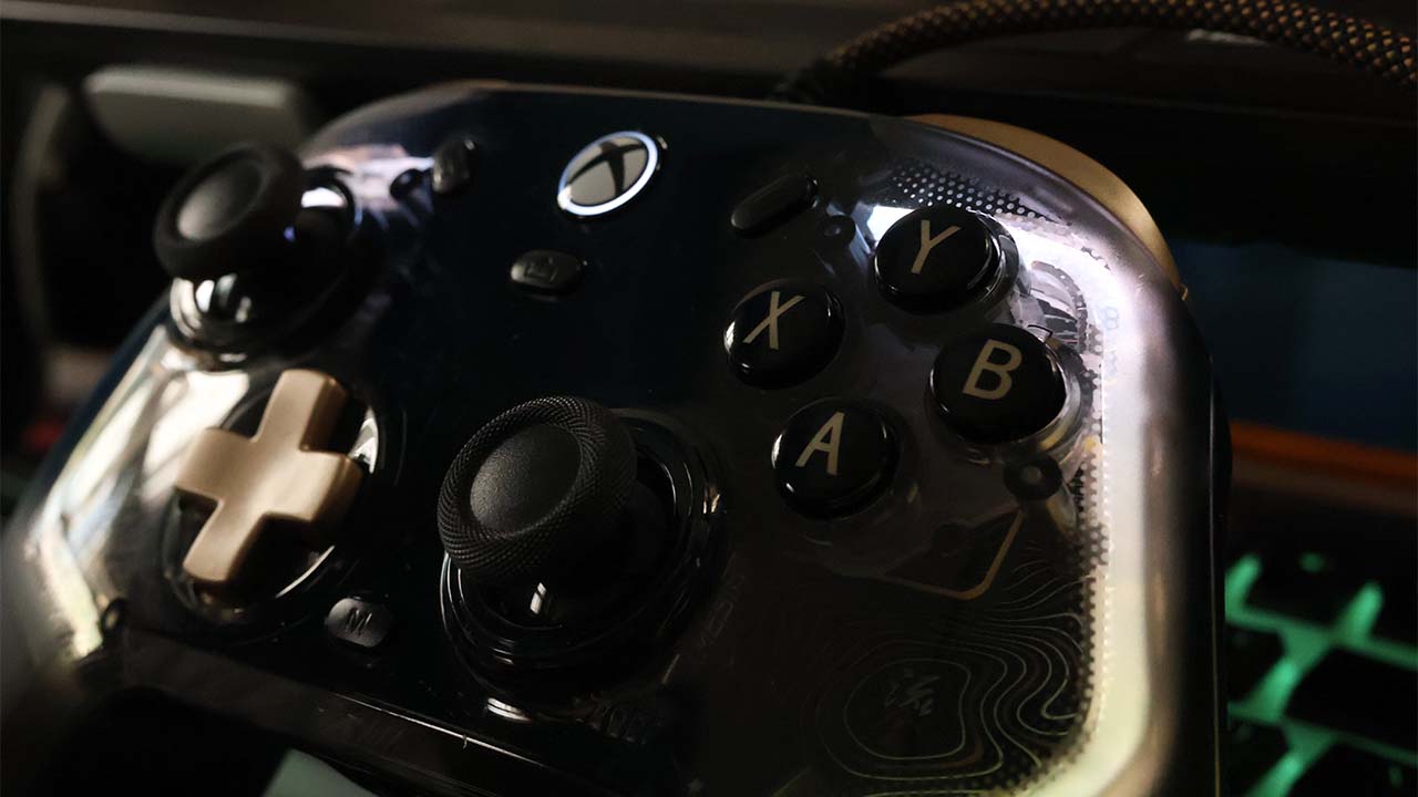 Adorned in black and gold, the Kaleid Flux looks regal. When powered, the controller lights up in white and gold, by default.