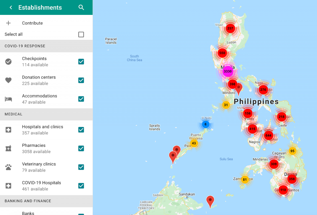 The website is developed entirely by volunteers. Data from various sources provide the information available on the website. Dashboard Philippines displays a list of checkpoints, establishments offering essential goods and services, and medical facilities on an interactive map. It also lists down the nearby donation centers. Finally, medical workers can see the real-time location of free shuttle transports and their respective routes as well.