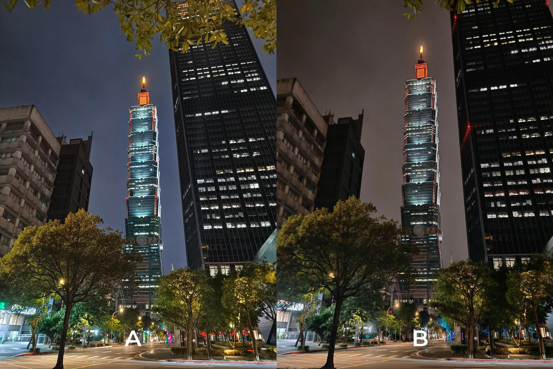Once the sunlight goes out and moonlight fades in, each of the phones’ Night Mode algorithm both kick in.