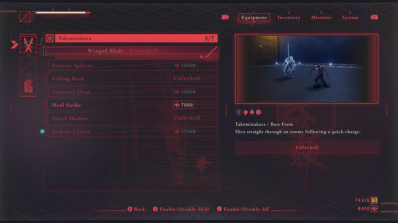 As you progress deeper into the game, enemies come in bigger hordes and also become a lot tougher, so levelling up your skills and weapons are essential. In between several parts of a main chapter or stage, you have chances to learn or improve on certain skills at the cost of NinjaCoins you earn through combat. These are put in place between crucial points in the level, so best to take advantage of them.