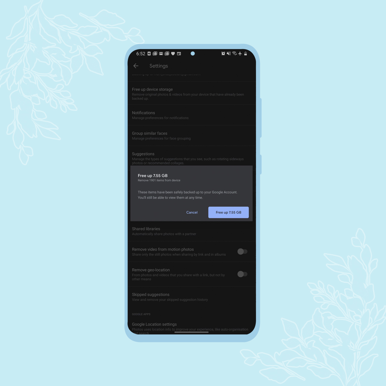 If you’re done backing up, you can free up space by going to Google Photos’ settings. If it’s backed up, you can remove the photos and videos on your device. Now, you don’t have to run out of space for new memories!
