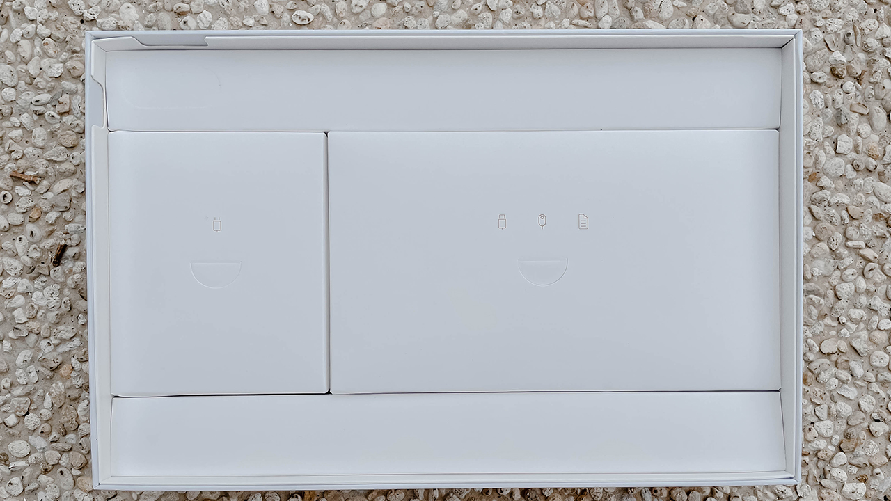 Underneath the device, you are presented with two boxes. One box for the charging brick…