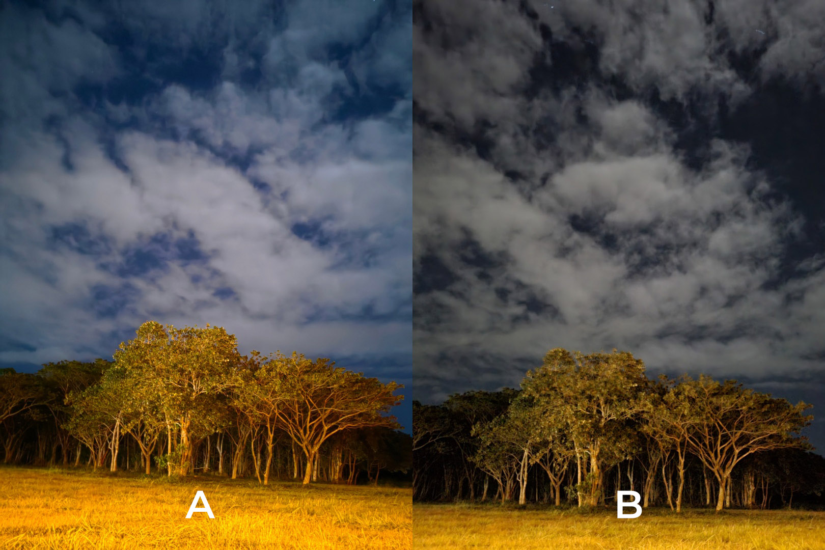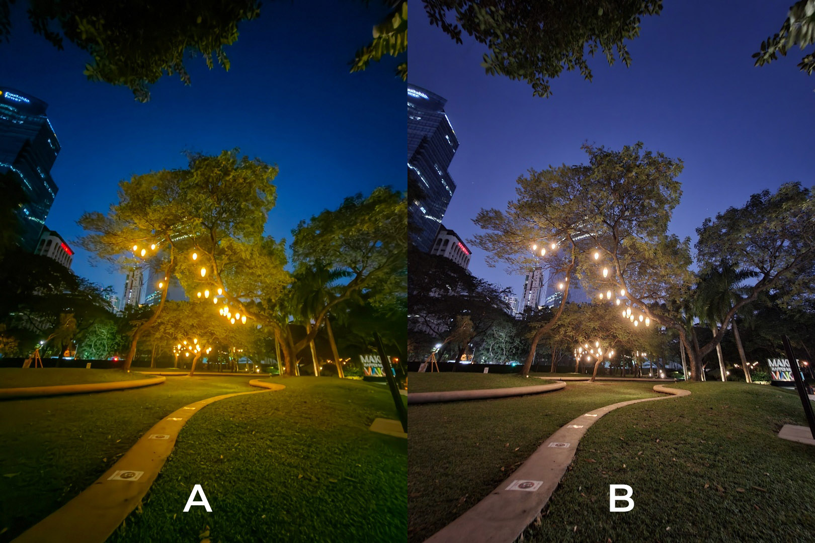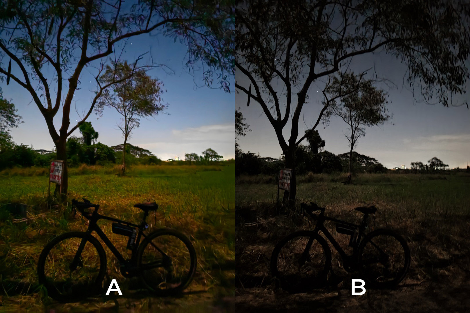 Once the sunlight goes out and moonlight fades in, each of the phones’ Night Mode algorithm both kick in.