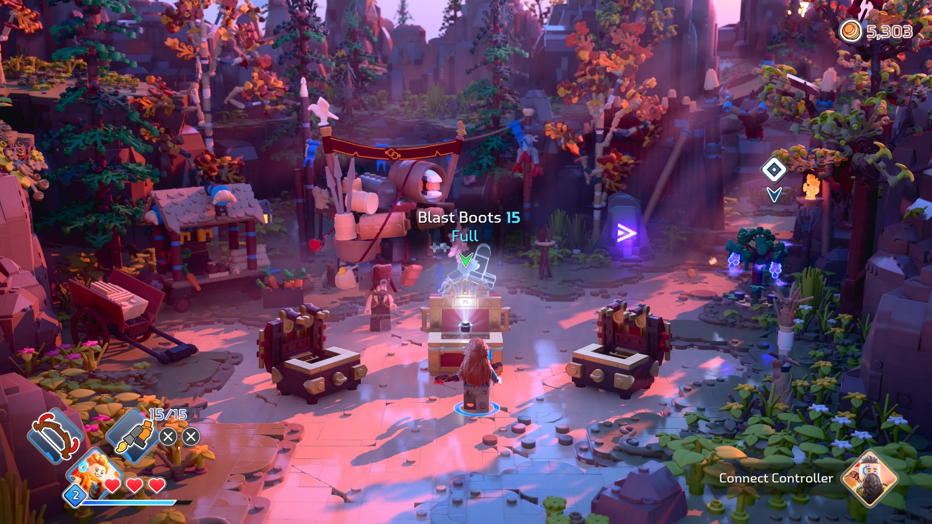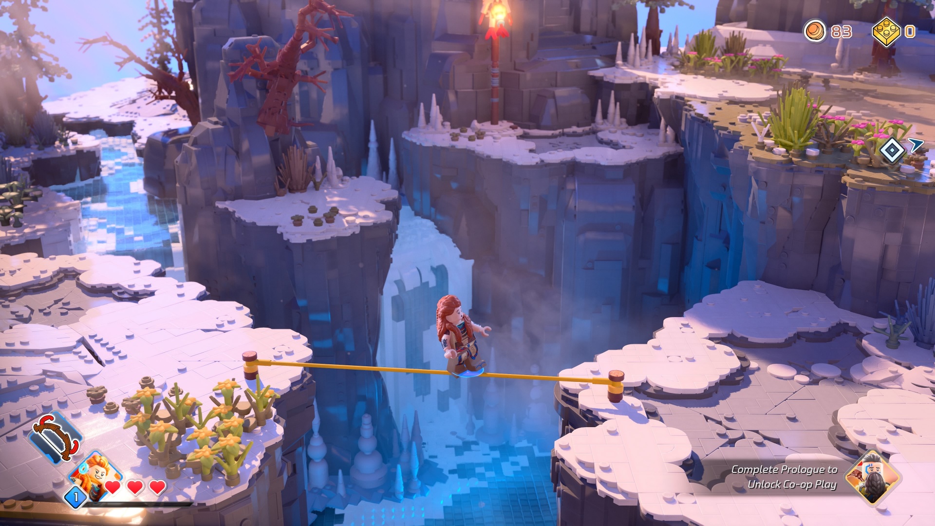 Unlike in the LEGO Star Wars, LEGO Horizon Adventures has a fixed camera angle. The platforming sections of the stages differ slightly but the entire game generally has a top-down perspective view.