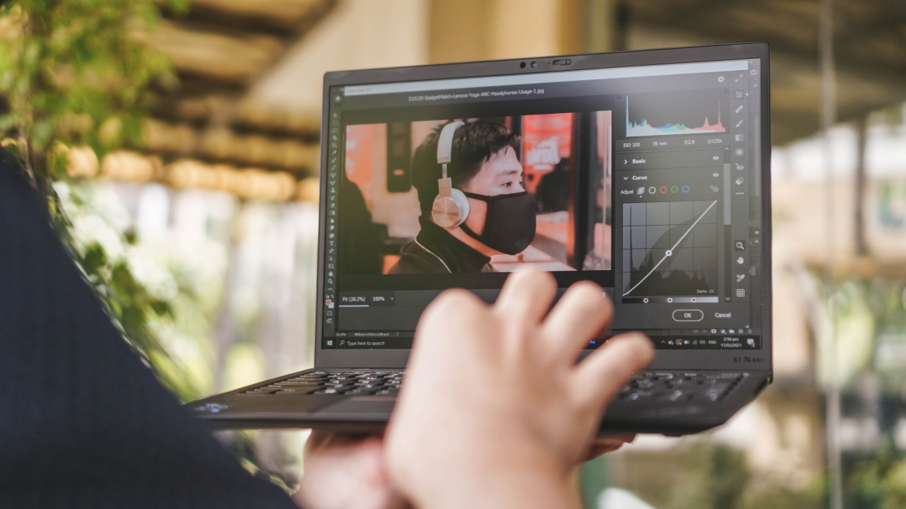 For post-processing photos, I usually rely on Adobe Lightroom or Photoshop’s built-in Camera Raw feature. Performing these tasks was a breeze because Intel’s latest processor and its new built-in Iris Xe graphics are powerful enough. As seen above, I was able to hold the laptop one-handed while trying to adjust settings using my other hand.