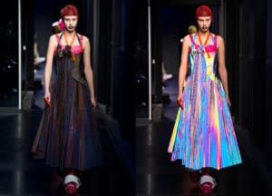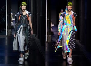 The colorful Maison Margiela tech-peppered show was the brainchild of famed designer John Galliano, who’s been the luxury fashion house’s creative director since 2014. Galliano, known for his outrageous designs, explains that this show was inspired by our present-day smartphone obsession.