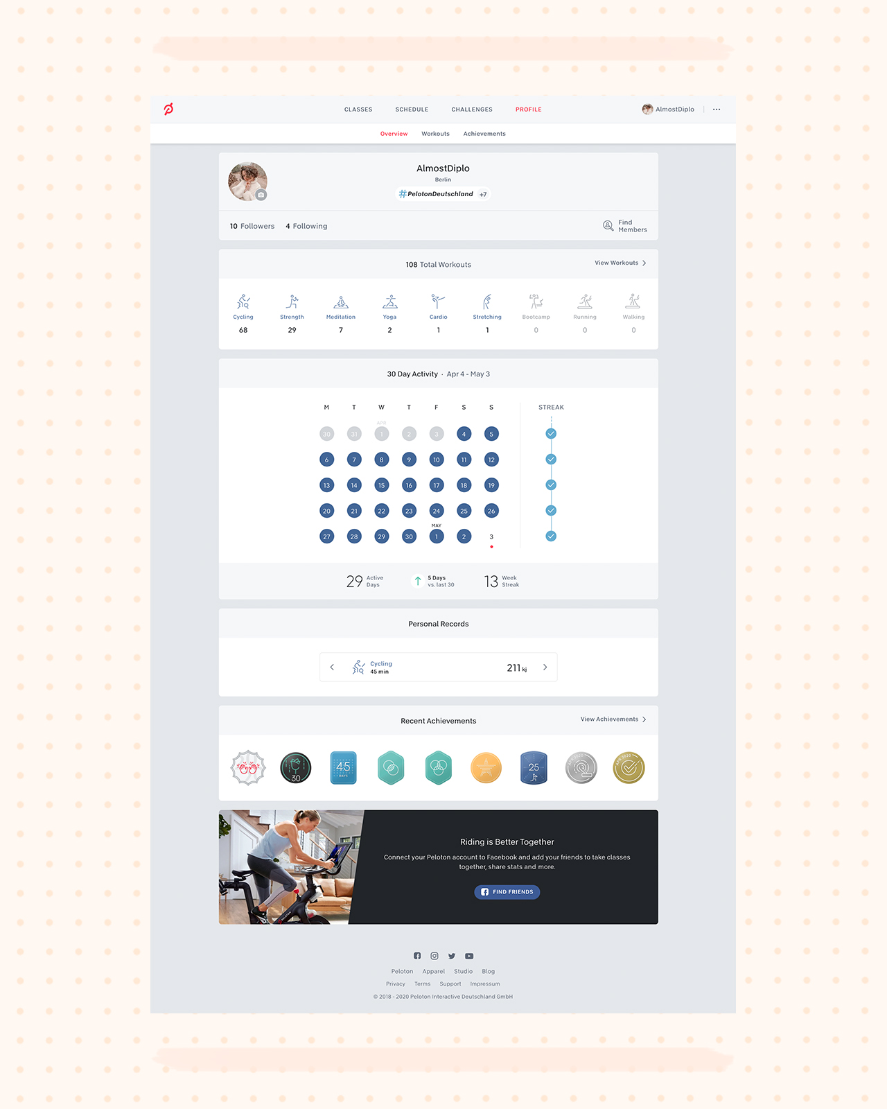 I find that they’re such a good way to keep you coming back on the bike and for the other classes as well. Not that I need any more convincing at this point — I’m practically addicted both to the spinning workouts and trying out the other classes on Peloton website. Once the app is available in Germany, gaining access to the other workouts would be a lot easier compared to going through the browser.