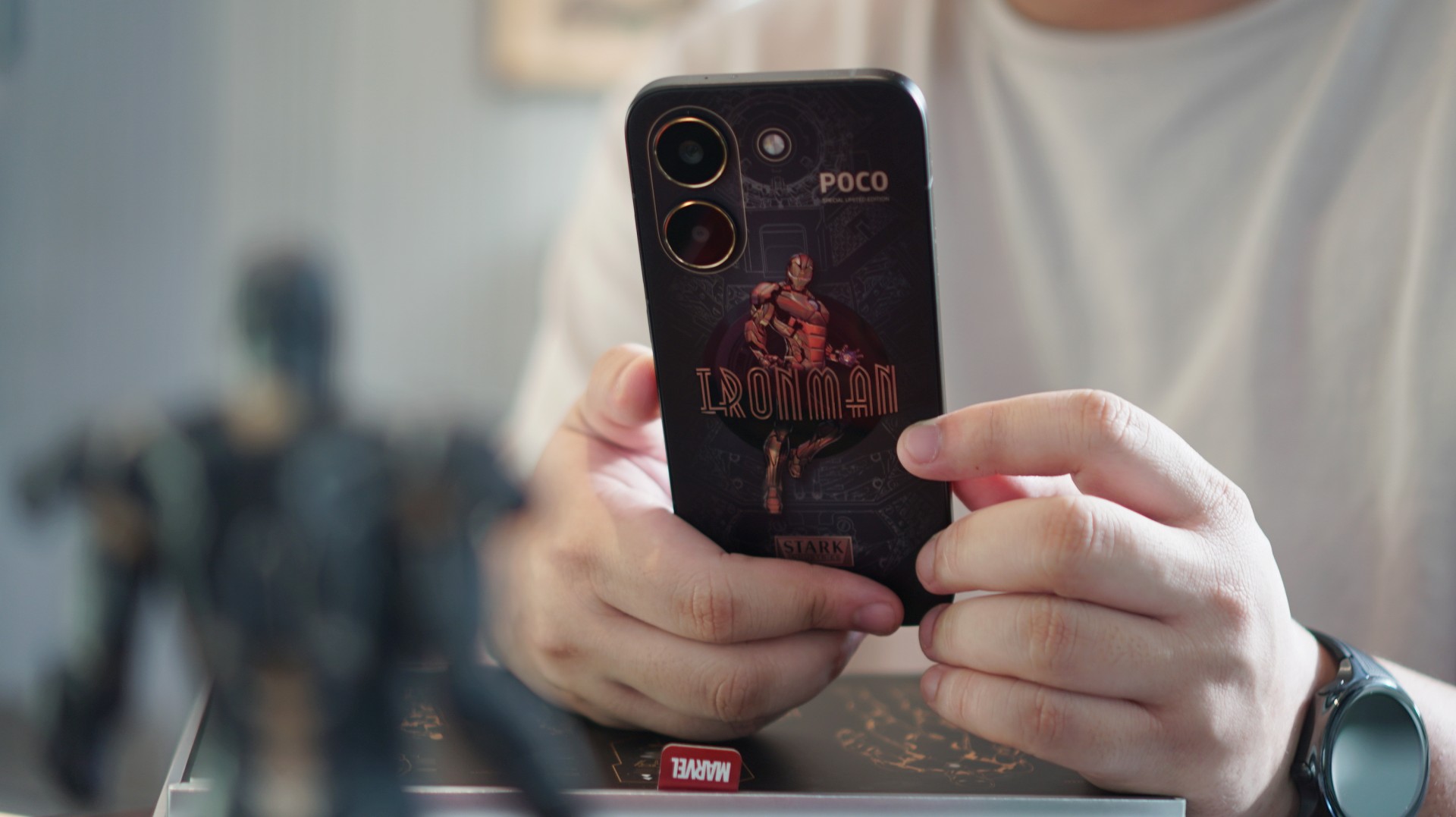 POCO’s latest collaboration wraps the familiar X-series formula in a design inspired by Iron Man’s Mark XV armor, codenamed “Sneaky.” Unlike the classic red-and-gold suit most fans recognize, this stealth-focused armor features a darker black-and-gold palette and appeared as part of the Iron Legion in Iron Man 3.