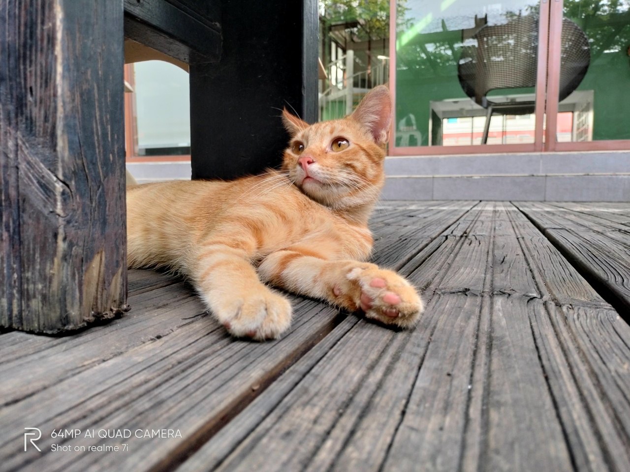 Our feline friend looks great lounging around on the wooden floor. Meanwhile, right behind him (it? her? I’m not really sure.) you’ll see a glass door that retains both the reflection as well as gives you peak at what’s inside.