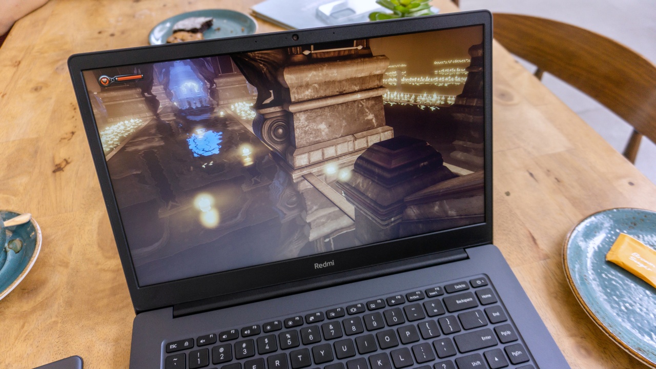 A 15.6-inch, Full HD display is what we’ll mostly be looking at on the RedmiBook 15. This display has a matte anti-glare coating and is wrapped around some fairly slim bezels with a 720p web camera on top.