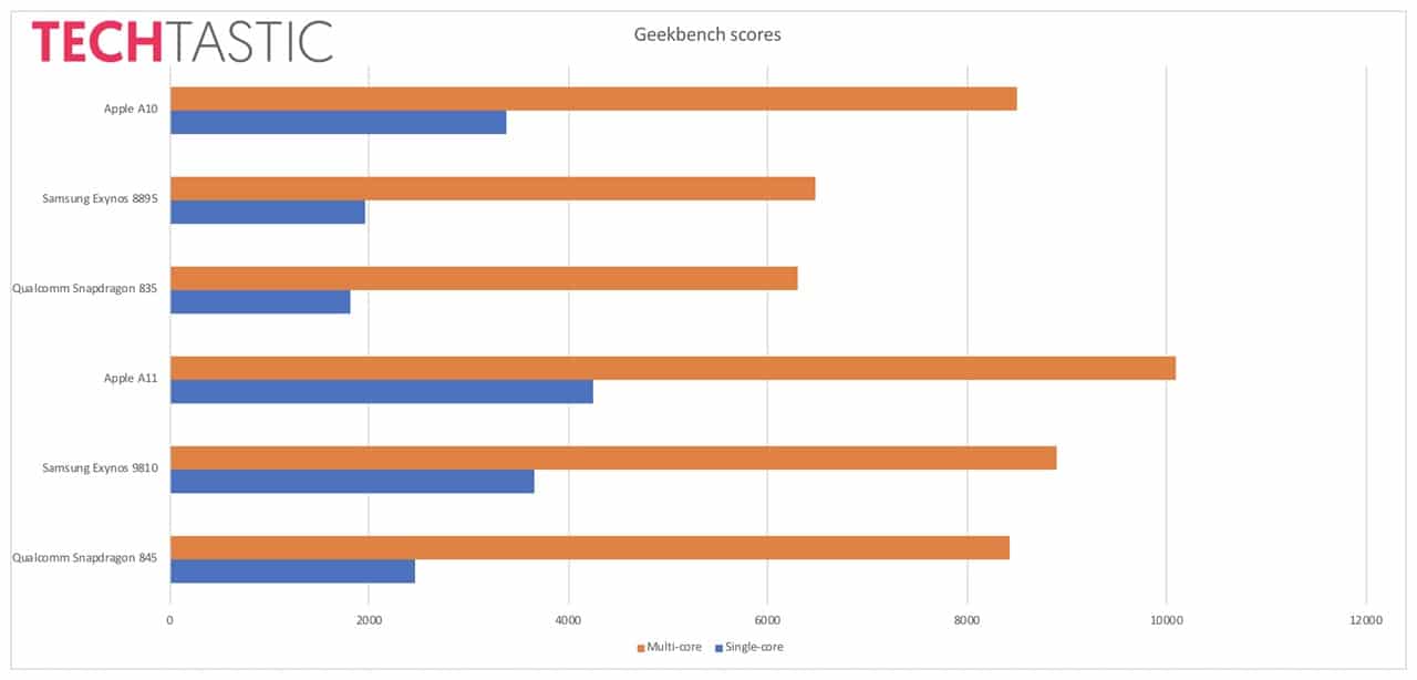 Here’s a graph from TechTastic showing how the new processors from Samsung and Qualcomm stack up against Apple’s own processor for the iPhone.