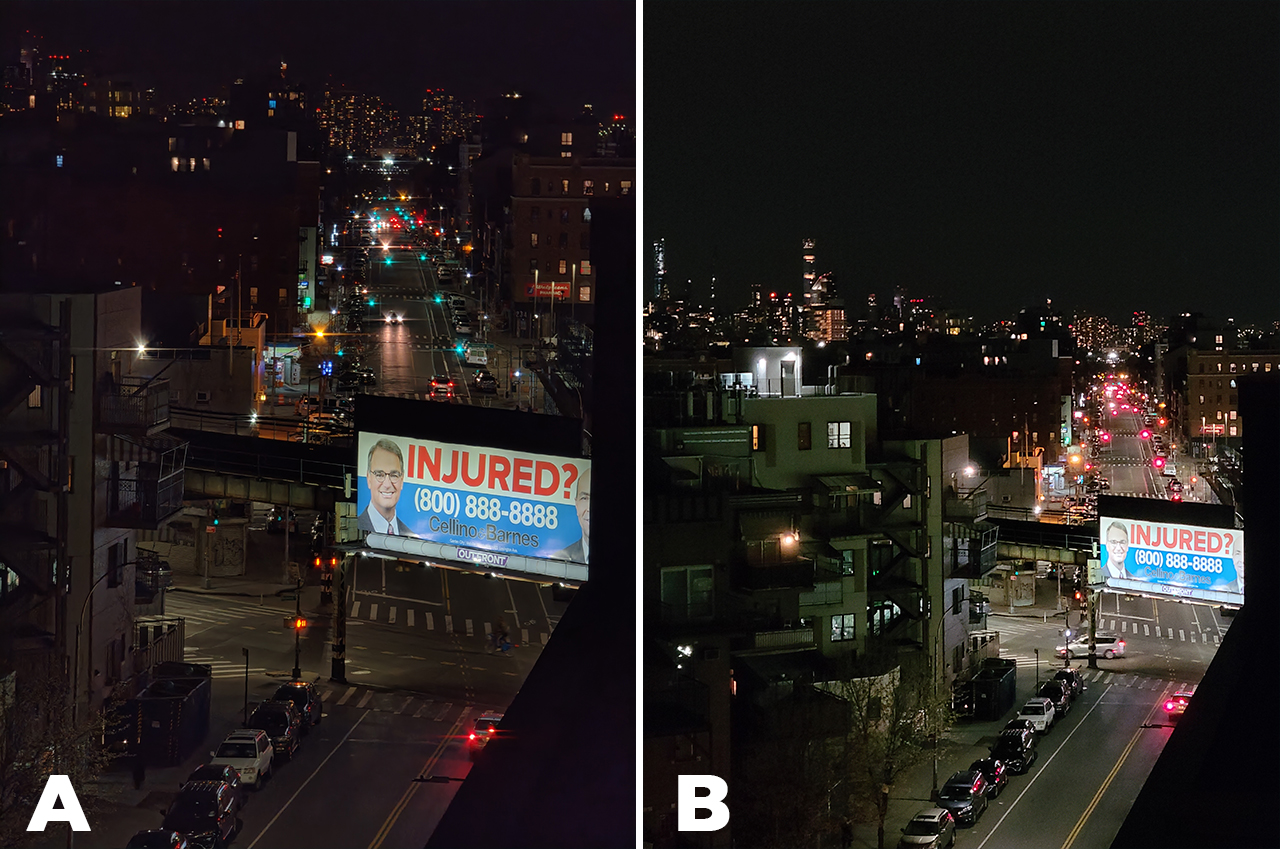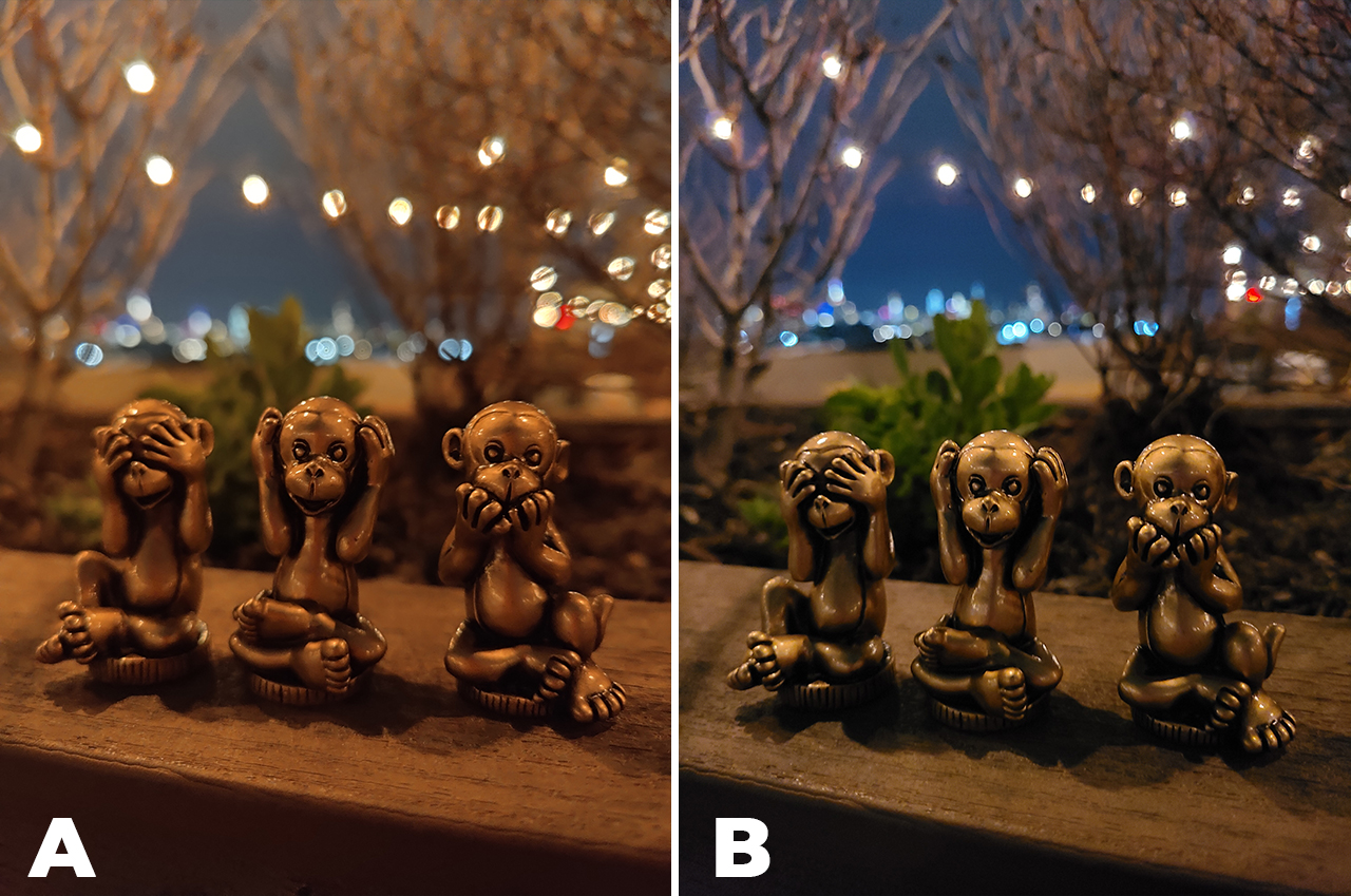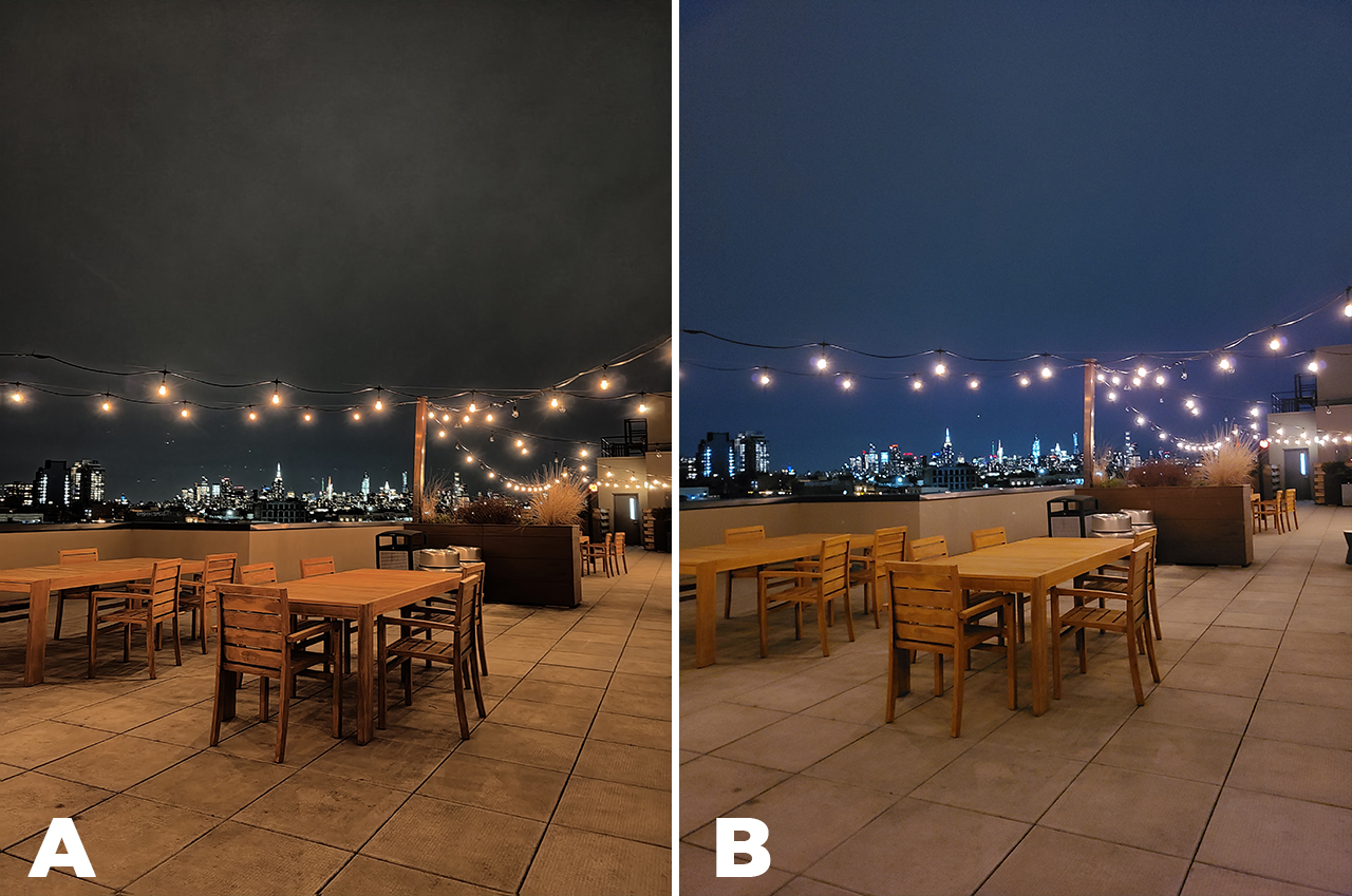 Once the sunlight goes out and moonlight fades in, each of the phones’ Night Mode algorithm both kick in.