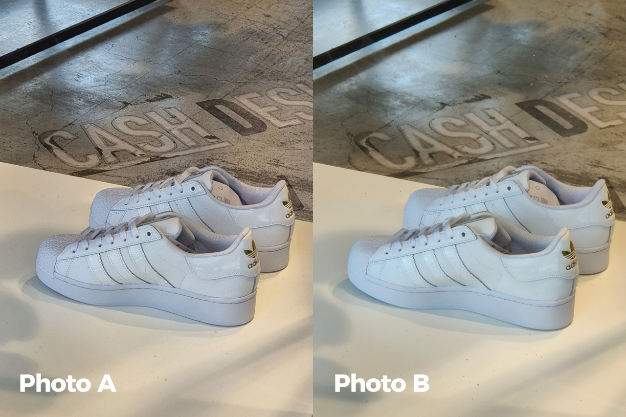 Also, having two telephoto lenses is a great feature in a sea of smartphones that only acquire one fixed telephoto lens (the 30x zoom shot of the S21 Ultra for example produced a clearer shot vs the one taken with the Find X3 Pro). But because of Samsung’s AI enhancements, the Galaxy S21 Ultra over-sharpened most photos — particularly shots of the coffee on a bench and the shoes inside a store.