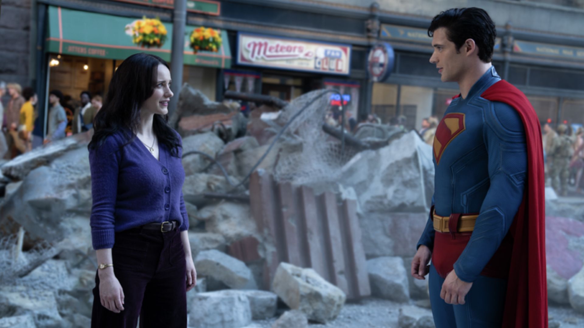In Superman, Corenswet plays the titular superhero and his alter-ego, Clark Kent. Brosnahan plays the Man of Steel’s love interest, Lois Lane.