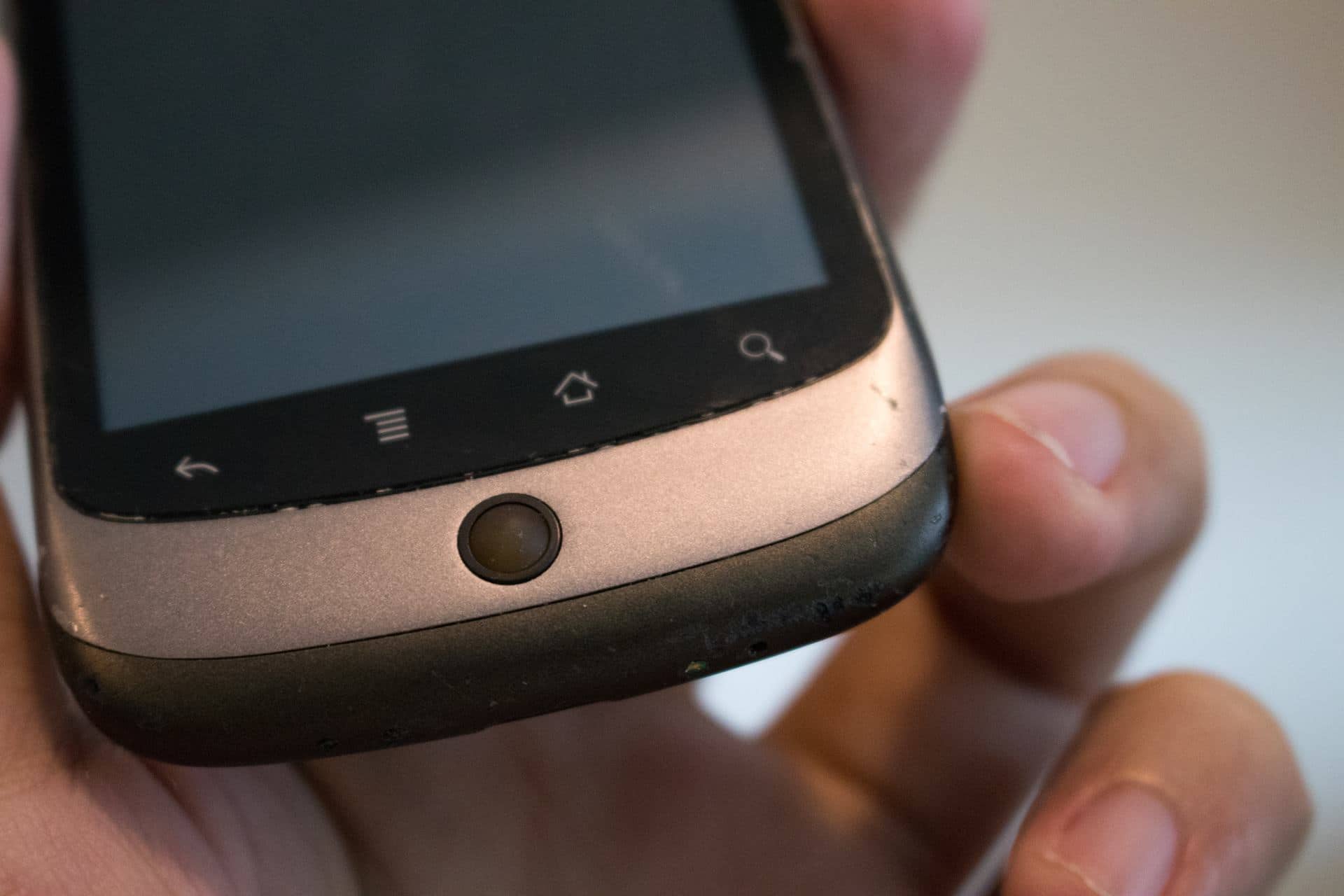 It had a distinct look and feel and a trackball that pulled double duty as a notification light. Underneath that glowing orb of crimson, azure, or emerald is a set of four backlit capacitive buttons for back, menu, home, and search. Yes, search. Because Google, that’s why.