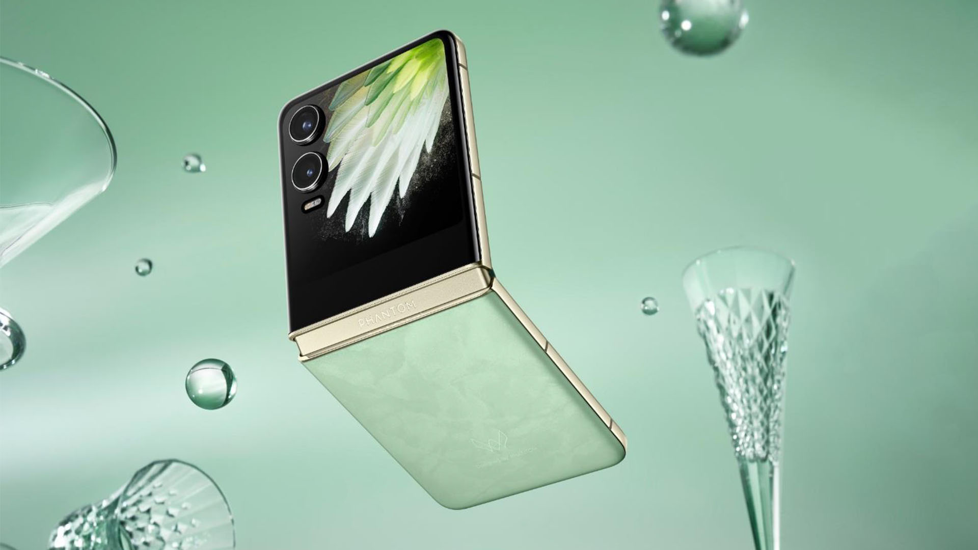 TECNO’s PHANTOM V Flip2 comes in either a subdued Moondust Grey hue or a fresher Travertine Green colorway.