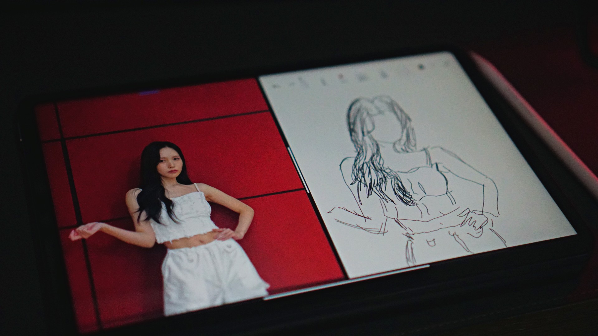 Which isn’t yours truly if I’m being honest. My days of scribbling and sketching are way, waaaay behind me. You can probably tell from my sad, sorry, attempt to sketch Mina of TWICE/MISAMO in the photo below.