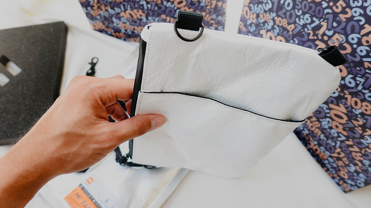 Although, it isn’t your regular pouch. The creases clearly show the material isn’t made of the usual fabric. It’s quite reminiscent of Freitag’s recycled laptop bags.