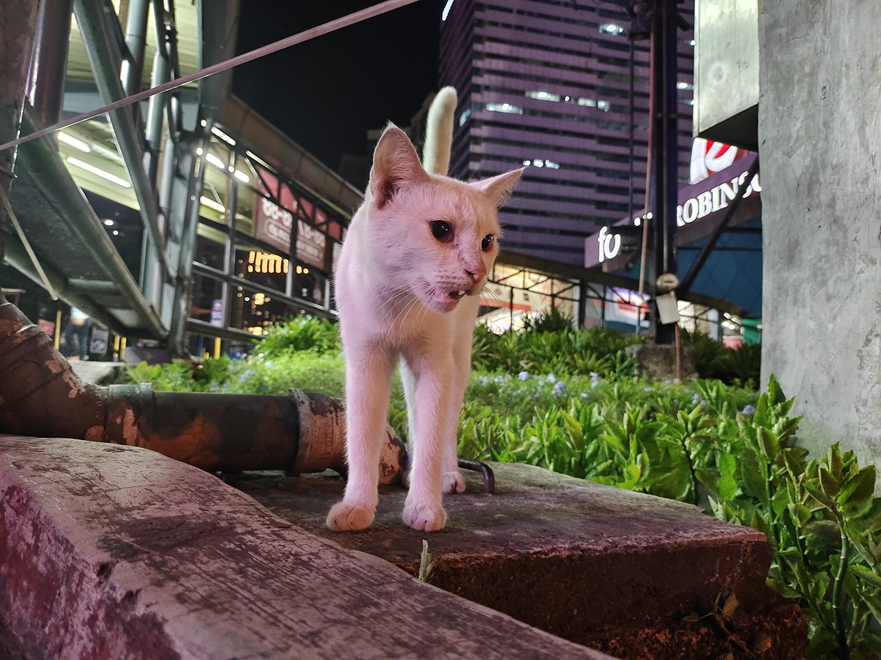 For cats — well, that one was unplanned. While taking outdoor photos of the phone, a friendly stray with mismatched eyes followed me around. At one point, she stepped on the phone and even kicked it around with zero consequences.