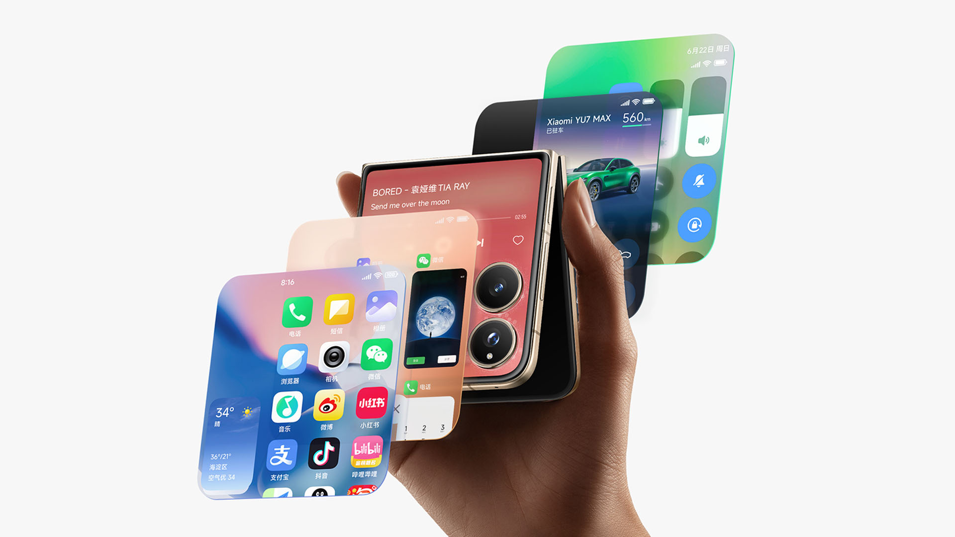 The Xiaomi MIX Flip2 runs Xiaomi HyperOS 2 with better cover screen functionality including more widgets, wider app support of over 500, and even quirkier animal character animations for lock screen and charging.