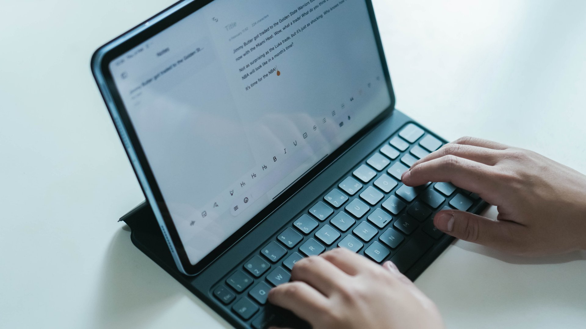 The third one is the real treasure. Called the Focus Keyboard, the add-on is practically an essential now in my toolkit. It’s still a keyboard but doesn’t have the trench. Instead, it relies on a fairly strong magnet and a sturdy panel pleasantly textured with felt. Plus the keyboard, it also has a small trackpad, practically turning the tablet into a full laptop. Though it’s naturally heavier than the previous covers, I’m willingly taking the weight along with the convenience of having a small laptop-like device on the go.